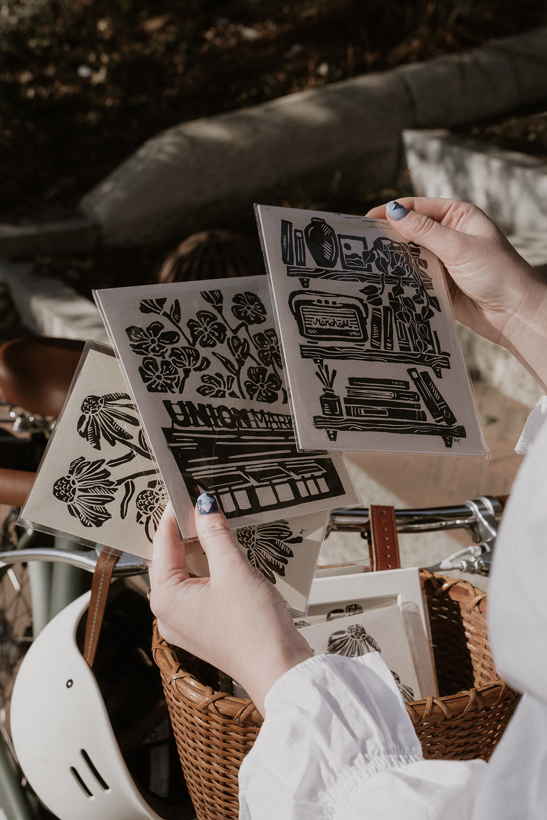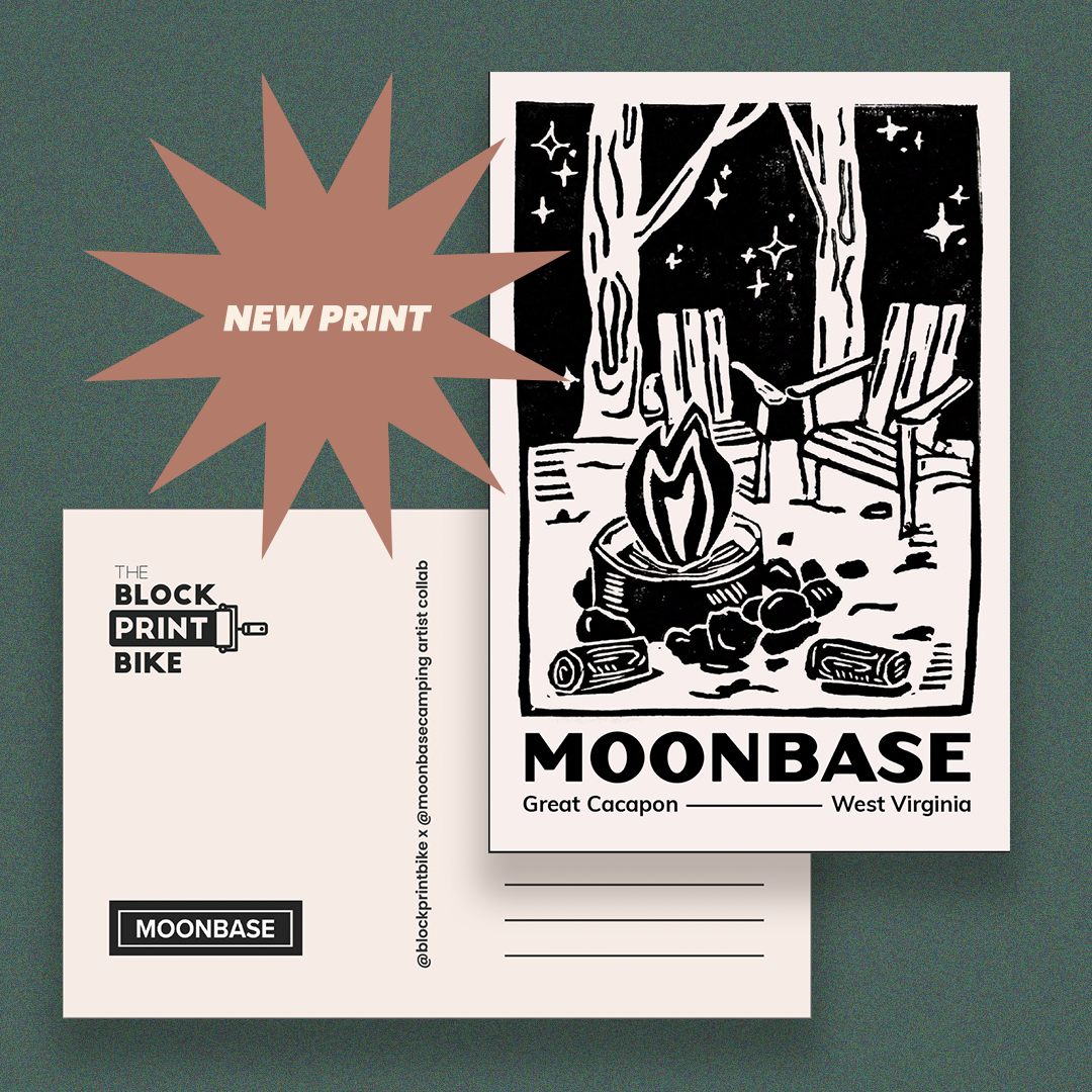 The Block Print Bike is a mobile printmaking studio that provides handmade block prints around DC. It started as a grant-assisted passion project with the hope to connect the community during the start of the pandemic by handing out block printed postcards in city parks. The Bike has since expanded to selling prints and hosting DIY art activations throughout the DMV area.